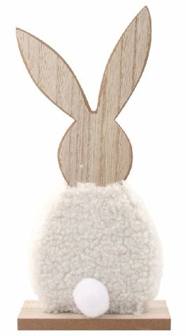 Zajíc dřevěný v bílém kožíšku 11 x 23 x 4 cm na postavení
