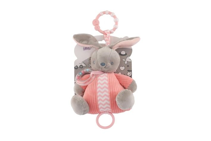 Hrací strojek se zvířátkem zaručeně upoutá pozornost Vašich malých dětí díky uklidňující melodii, kterou vydává. Délka melodie po natažení cca 1 minuta 20 vteřin. Plyšová hračka má také chrastítko.
