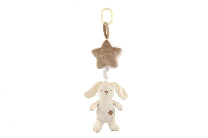 Natahovací plyšový zajíc s hvězdou hraje příjemnou melodii, která miminko uklidní a pomáhá mu při usínání. Hračku lze zavěsit za pomocí klipu na postýlku nebo kočárek. Hrací strojek je zabudovaný uvnitř hvězdičky, zajíček slouží jako natahovací klip.