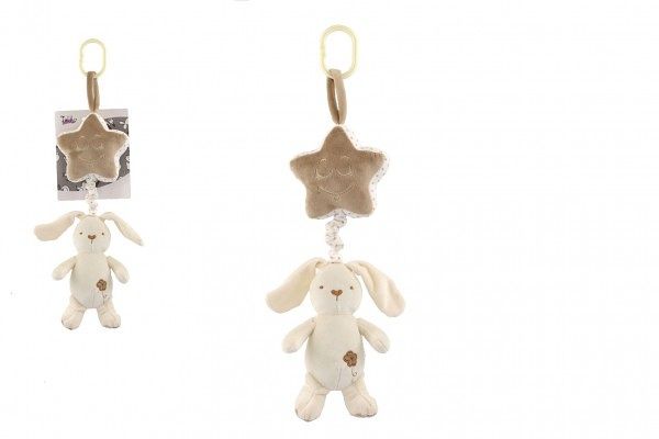 Natahovací plyšový zajíc s hvězdou hraje příjemnou melodii, která miminko uklidní a pomáhá mu při usínání. Hračku lze zavěsit za pomocí klipu na postýlku nebo kočárek. Hrací strojek je zabudovaný uvnitř hvězdičky, zajíček slouží jako natahovací klip.