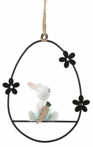 Zajíc v kovovém vejci 9 x 12,5 x 4 cm na zavěšení
