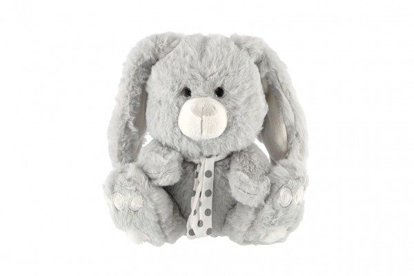 Zajíc/Zajíček sedící se šátkem plyš 20cm šedivý v sáčku 0+