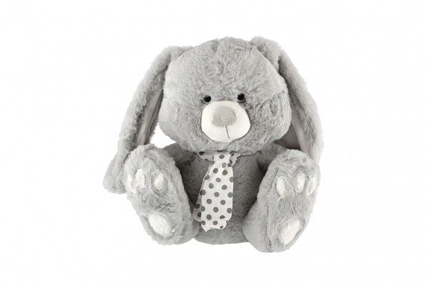 Zajíc/Zajíček sedící se šátkem plyš 30cm šedivý v sáčku 0+