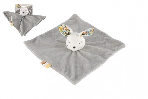 Zajíc/Zajíček usínáček chrastítko plyš 25x25cm šedivý na kartě v sáčku 0+