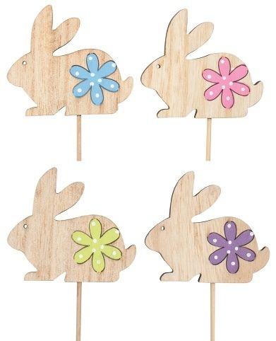 Zajíček dřevěný s kytičkou 8 cm + špejle