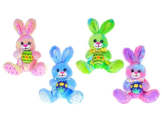 Zajíček plyšový 15cm sedící s velikonočním vajíčkem 4barvy 0m+
