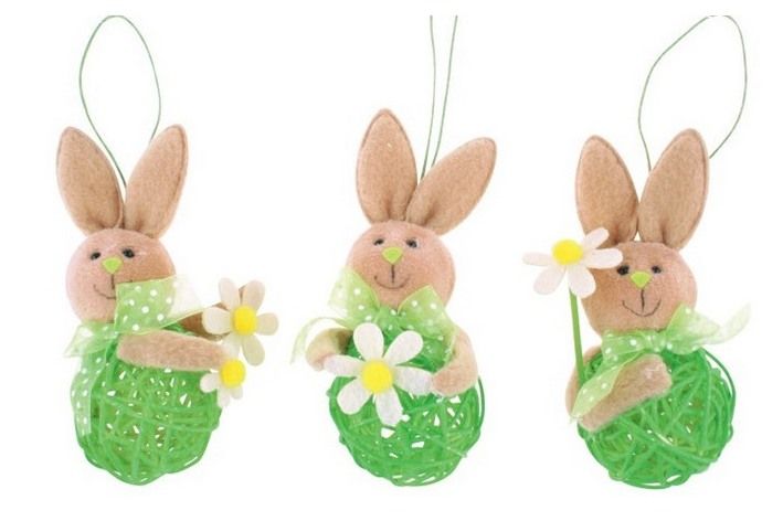 Zajíček zelený ratan a plyš na zavěšení 11cm.