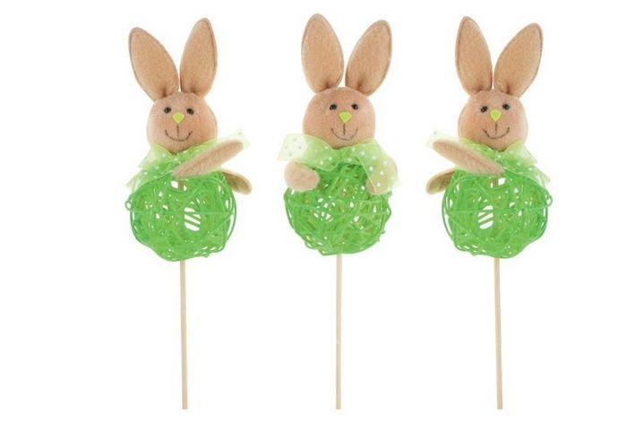 Zajíček zelený ratan a plyš zápich 11cm + špejle