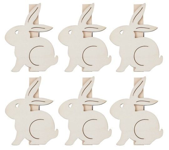 Zajíci dřevění na kolíčku 6 cm, 6 ks v sáčku