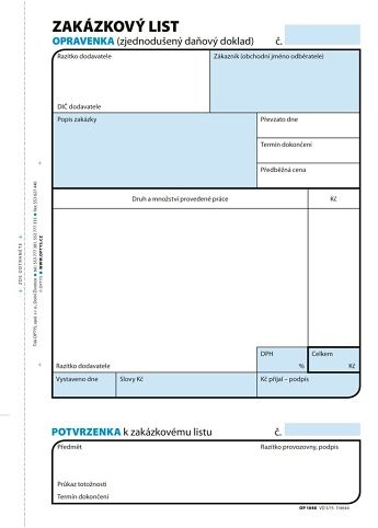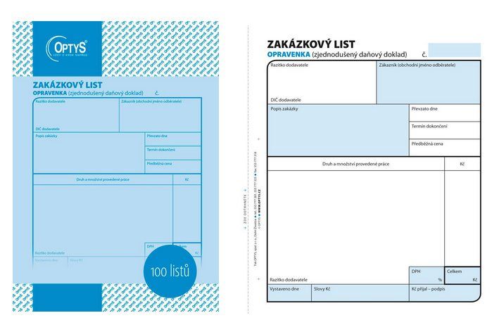 Zakázkový list, A5, opravenka, 100 listů, OPTYS 1048