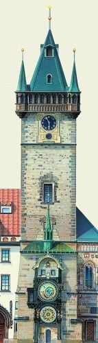 Papírová záložka do knihy s motivem Staroměstské radnice v Praze.