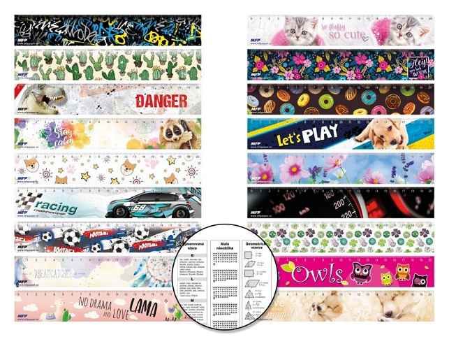 Máš ráda knížky a čtení? Pak ti nesmí chybět papírová záložka do knihy! - Na přední straně je každá záložka ilustrována odlišnými motivy, nechybí zde ani pravítko, z druhé strany můžeme najít různé školní pomůcky pro děti - vyjmenovaná slova, malou násobilku, geometrické vzorce. Uvedená cena je za 1 ks.