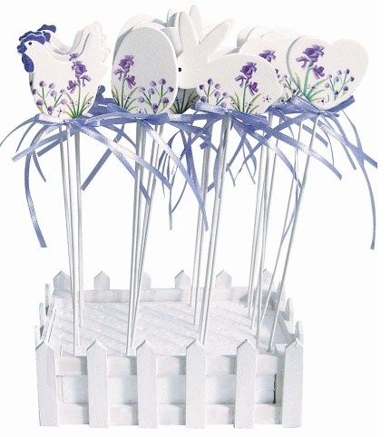 Zápich dřevěný s levandulovým dekorem cca 5cm + špejle. Dodáváme v mixu motivů, cena za 1 kus. Při koupi 24 ks dřevěná ohrádka zdarma.