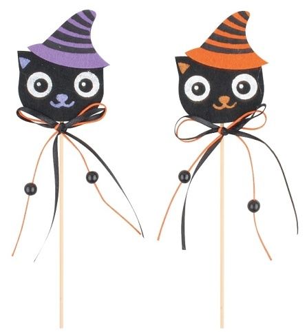 Zápich kočky z filcu 7 cm + špejle, 2 ks
