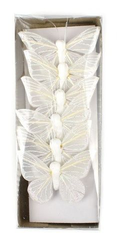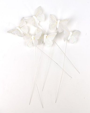Zápich Motýl, bílý, 6 cm, sada 6 ks