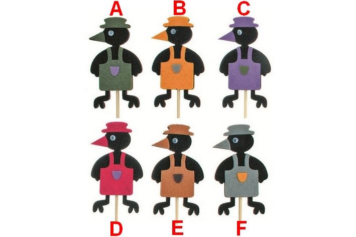 Zápich vrána v zástěře 7cm+špejle 15cm, 6 barev