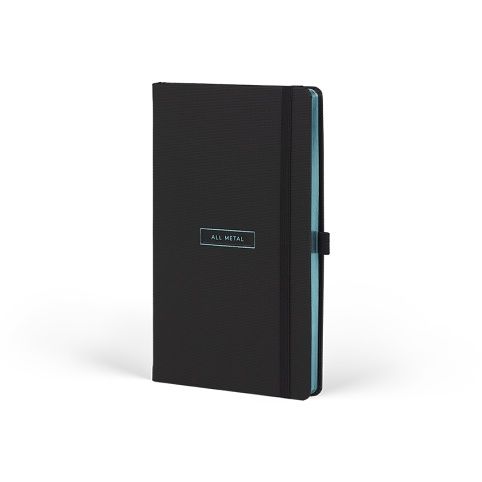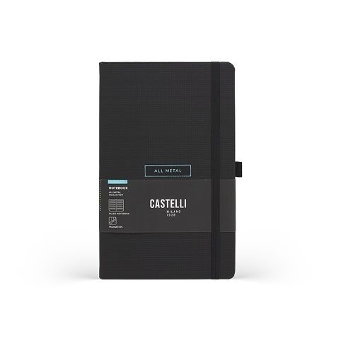 Zápisník Castelli Milano vel. M, Bronze, All Metal, Tiffany, modro-zelený, rozměry 13 cmx21 cmx 4,8 cm, linka, je vyroben z upravené vlny, ze zbytků vlny a bavlny z výroby. 80g/m2, bez PVC, s gumičkou, poutkem na pero,