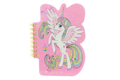 Zápisník ve tvaru jednorožce. Listy jsou bílé nelinkované. Baleno v sáčku. Rozměry 10x14 cm. Výrobek není hračka.