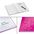 Linkovaný blok s tvrdými deskami a ve výrazných barvách. Polaminovaný povrch a lesklé provedení dodává zápisníku zajímavý vzhled příjemný na dotek.