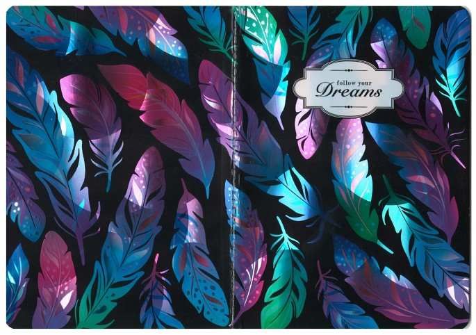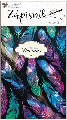 Zápisník šitý 10,5 x 15 cm, 64 stran, linkovaný, peříčka, hologram