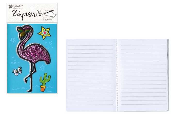 Zápisník šitý 10,5x15cm,64stran,linkovaný s 3D plameňákem