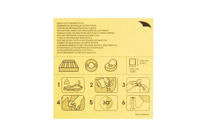 Samolepící záplaty na bazénovou fólii a nafukovací lehátka apod., určeno pro opravy částí bazénu, které nejsou pod hladinou vody – zejména nafukovacích prstenců, nutno lepit na čisté a suché podklady, rozměr záplaty 6,5 × 6,5 cm, balení obsahuje 10 ks.