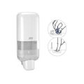 Zásobník na mýdla a dezinfekční prostředky Tork lze používat v kombinaci se širokou nabídkou Tork mýdel, dezinfekčních prostředků a krémů v hermeticky uzavřených lahvích.