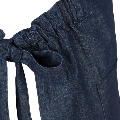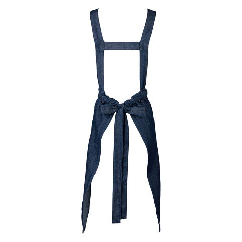 Denimová zástěra z kolekce Kateřiny Winterové, která díky unikátnímu stahovacímu systému padne každé postavě. Zástěra má široká ramínka, která se vzadu kříží, a po stranách velké kapsy. Zástěra je vyrobena ve dvou velikostech: XS/S a M/L.