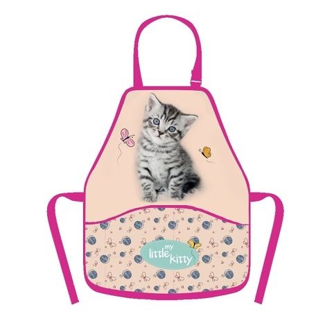 Zástěra do výtvarné výchovy či na jiné tvořící aktivity. Zapínání na sponku kolem krku (délka max. 50 cm), v pase šňůrky na zavázání (max. 80 cm). Vpředu dvě prostorné kapsy. Materiál 100% polyester.