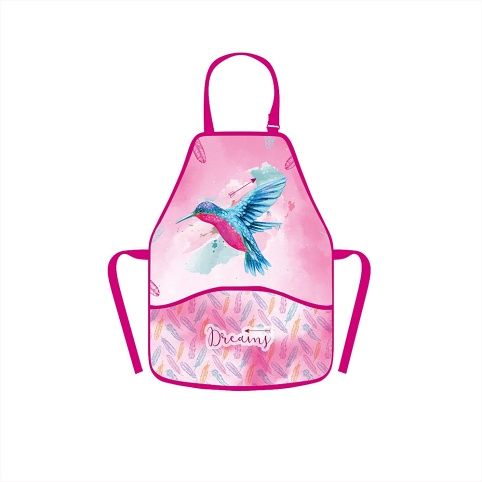 Zástěra do výtvarné výchovy či na jiné tvořící aktivity. Zapínání na sponku kolem krku (délka max. 50 cm), v pase šňůrky na zavázání (max. 80 cm). Vpředu dvě prostorné kapsy. Materiál 100% polyester.