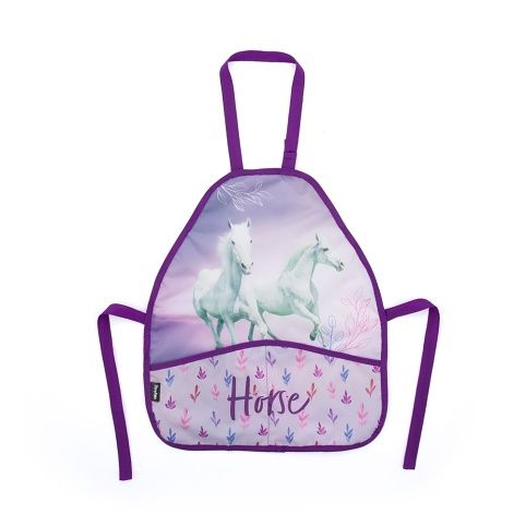 Zástěra do výtvarné výchovy či na jiné tvořící aktivity. Zapínání na sponku kolem krku (délka max. 50 cm), v pase šňůrky na zavázání (max. 80 cm). Vpředu dvě prostorné kapsy. Materiál 100% polyester.