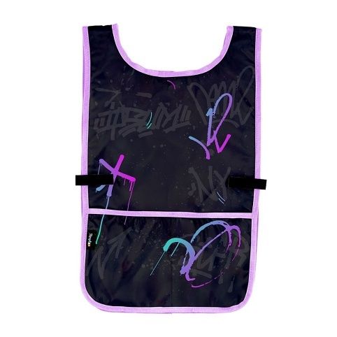 Zástěra pončo do výtvarné výchovy či na jiné tvořící aktivity. Oblékání přes hlavu, po stranách zapínání na druk. Vpředu jedna prostorná kapsa. Materiál 100% polyester.