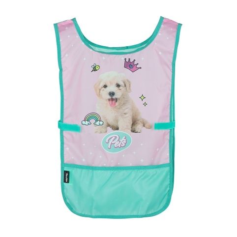 Zástěra pončo do výtvarné výchovy či na jiné tvořící aktivity. Oblékání přes hlavu a po stranách zapínání na suchý zip. Vpředu jedna prostorná kapsa. Materiál 100% polyester.
