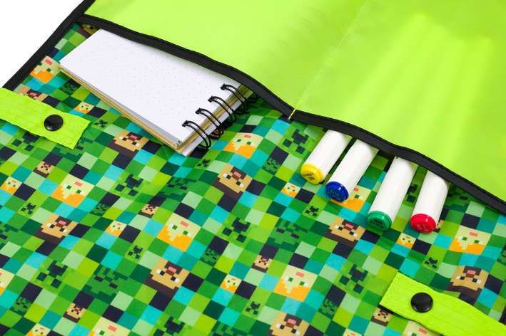 V letošní kolekci nabízíme také nový střih zástěrky na výtvarnou výchovu, která je zapínatelná na praktické druky. Dítě nemusí zástěrku zavazovat na zádech, druky si snadno nastaví velikost kolem pasu a zároveň má díky novému střihu chráněnou větší část těla. Zástěrka je vybavena dvěma kapsami a je snadno omyvatelná.
