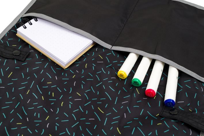 Zástěrka na výtvarnou výchovu typu pončo je zapíntelná na praktické druky. Dítě nemusí zástěrku zavazovat na zádech, snadno si samo nastaví velikost kolem pasu a zároveň má díky praktickému střihu chráněnou větší část těla. Zástěrka je vybavena dvěma kapsami a je snadno omyvatelná. Rozměr: 36 x 60 cm