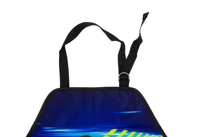 Zástěrka na výtvarnou výchovu se navléká nastavitelným popruhem přes hlavu a zaváže se kolem těla pomocí šňůrek. Je vyrobena z omyvatelného polyesterového materiálu, který se lehce udržuje. Na přední straně jsou 2 kapsy na výtvarné pomůcky. Hlavní část zástěrky je potištěna obrázky ve školních designech, ladících ke školní kolekci.