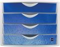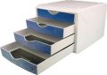 Zásuvkový box "Chameleon", 4 zásuvky, bílo-modrá, plast, HELIT