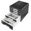 4 malé zásuvky pro ukládání kancelářských dokumentů a výrobků pro archivaci, jako jsou např. kapsy, pořadače, desky na spisy a 1 velký šuplík pro skladování dalších předmětů, např. sešívačky, mobilních zařízení atd.