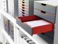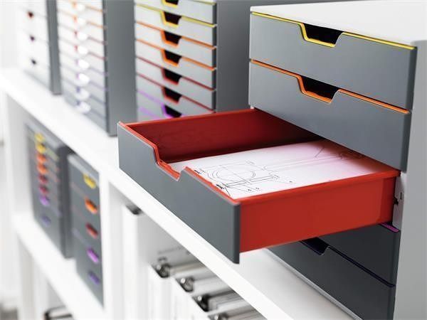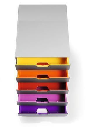 Snadná organizace díky zásuvkovému boxu moderního provedení. Díky barvám usnadňuje kategorizaci dokumentů.