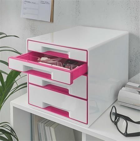 Zásuvkový box "Wow Cube", bílá/růžová, 4 zásuvky, LEITZ