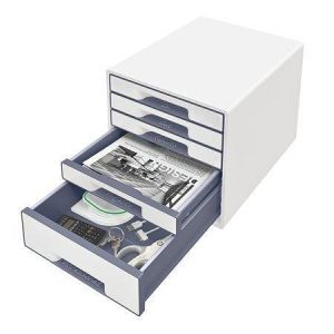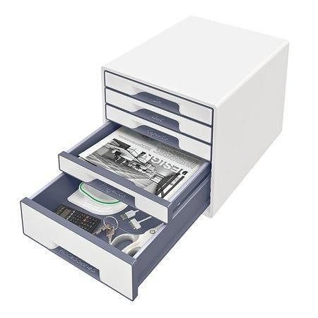Zásuvkový box "Wow", bílá/šedá, plast, 5 zásuvek, LEITZ