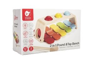 Dřevěná zatloukačka s kladívkem ve veselých barvách je skvělá hračka. Balení obsahuje zatloukačku, kladívko a 3 ks kuliček. Kladívko z jedné strany slouží jako palička pro hraní na xylofon. Hračka rozvíjí jemnou motoriku rukou. Užívejte spoustu zábavy s touto hračkou.