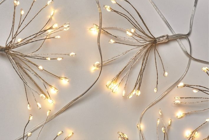 Vhodné do interiéru.Norma IP20.Barva světla: teplá bílá.Funkce: svítí.Počet LED: 150.Počet trsů: 5.Barva drátu: transparentní.Typ napájení: 230 VDélka řetězu: 2,35 m.Délka přívodního kabelu: 3 m. Položka obsahuje funkci časovače: svítí stále6 hodin zapnuto, 18 hodin vypnuto (opakuje se, dokud jej nevypnete)vypnuto