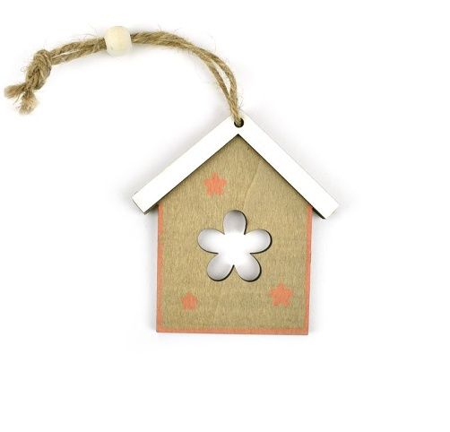 Tento dřevěný závěs ve tvaru domku je velice efektní. Je již navlečen na jutovém provázku, což vám usnadní jeho použití. Stačí domek zavěsit na větvičku nebo na provázek a jarní dekorace je hotová! Originálně dotvoří třeba váš věnec na dveře.