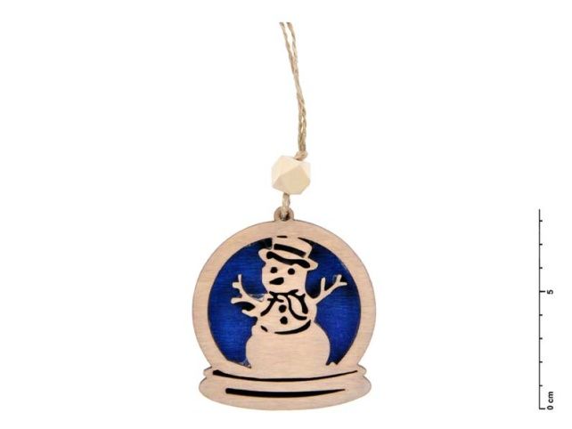 Vánoční dřevěná dekorace s vyobrazením sněhuláka a s korálkem Tato vánoční ozdoba je vyřezaná z překližky s modrým pozadím. V horní části je očko s provázkem, které umožňuje snadné zavěšení. Můžete použít na ozdobení vánočního stromečku, zavěsit na dveře, okno, nebo jinak zkrášlit Vaše bydlení. Výška: 75 mm Uvedená cena je za 1 ks.