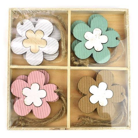 Závěs květinka, dřevo, mix, 5 cm, 8 ks