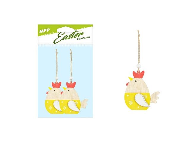 Závěs Slepice dřevo 2ks/9cm žluté