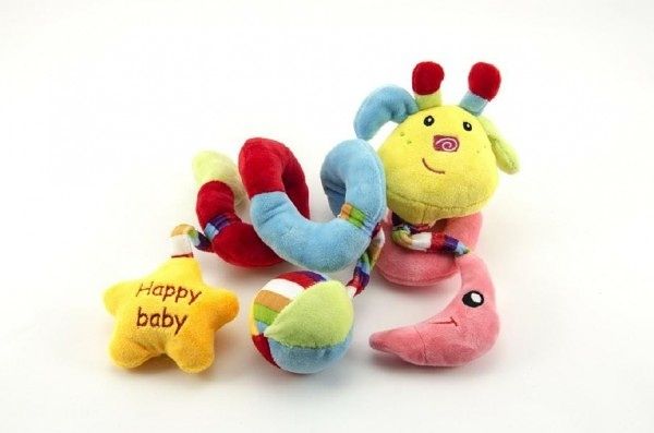 Krásná plyšová housenka na postýlku ve veselých barvách pro vaše miminko. Hračka napomáhá při rozvíjení smyslového vnímání dítěte a podněcuje jeho fantazii. Díky spirálovitému tvaru se dá upevnit na postýlku, autosedačku nebo ke kočárku. Velikost 40cm.