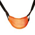 Dětská červená houpačka, vyrobená z nylonových a polyesterových vláken. Houpačka je prodyšná neklouzavá a odolná. Je skladná a snadno se přenáší. Kovová spona umožňuje přizpůsobení délky lana podle velikosti dítěte.