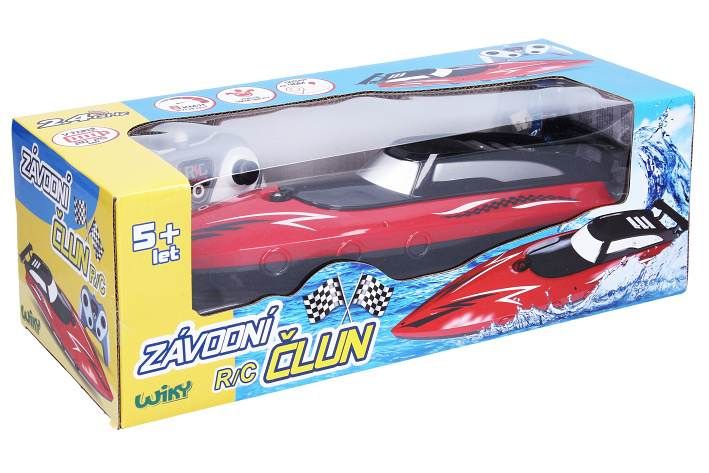 Závodní člun RC na dálkové ovládání - český obal. Rozměry 33x9,5x8 cm. Frekvence 2. 4 GHz. 3. 7V 500mAh bateriový pack do člunu součástí, 2xAA baterie do ovladače nejsou součástí. USB kabel součástí. Přepínač ON/OFF na ovladači.